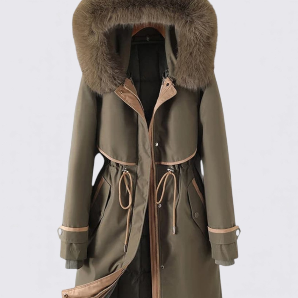 Dame Frakke med hætte – Lynlås – Med pelskrave
