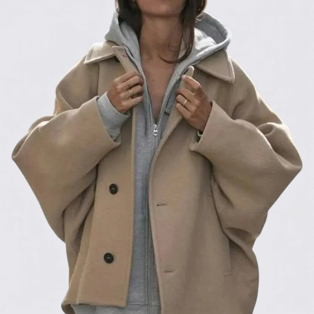 Oplev en frakke, der imponerer med sin afdæmpede udstråling og præcise form. Denne model har knaplukning foran, lige snit og en kortere længde. Den enkle silhuet gør den til en passende ledsager til byens gader, hverdag eller pæne kombinationer.