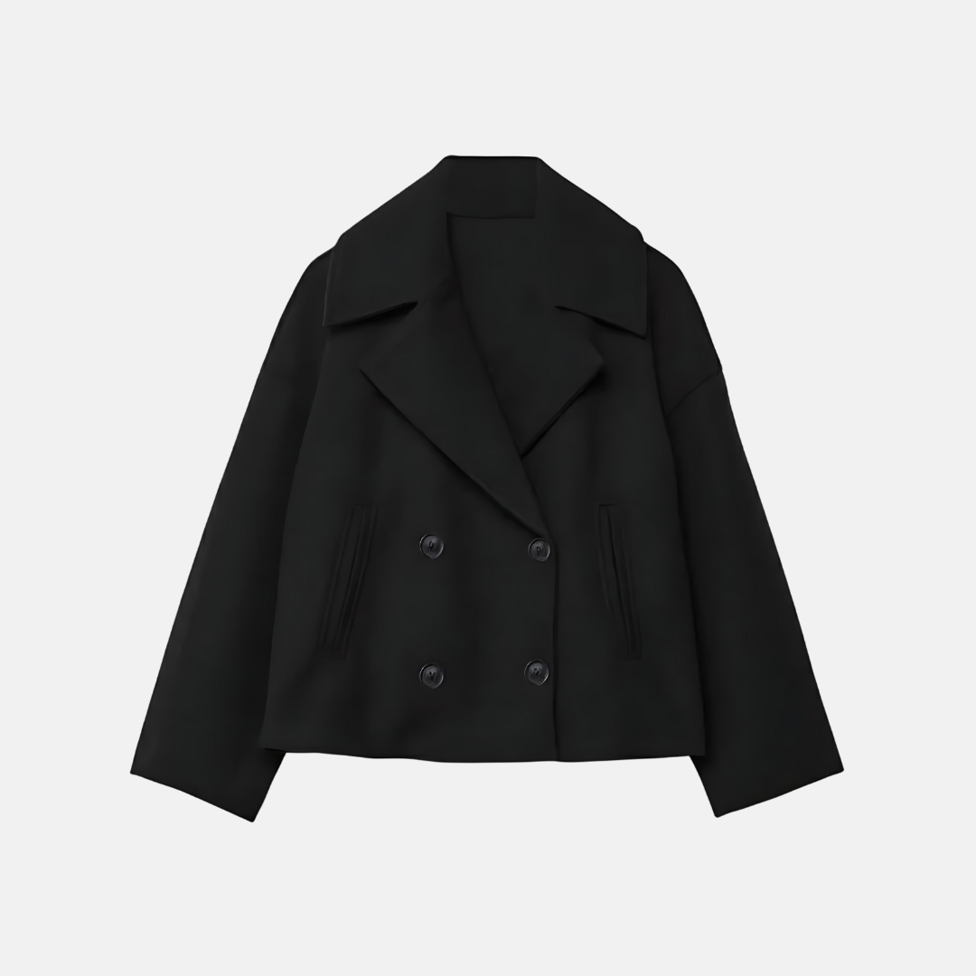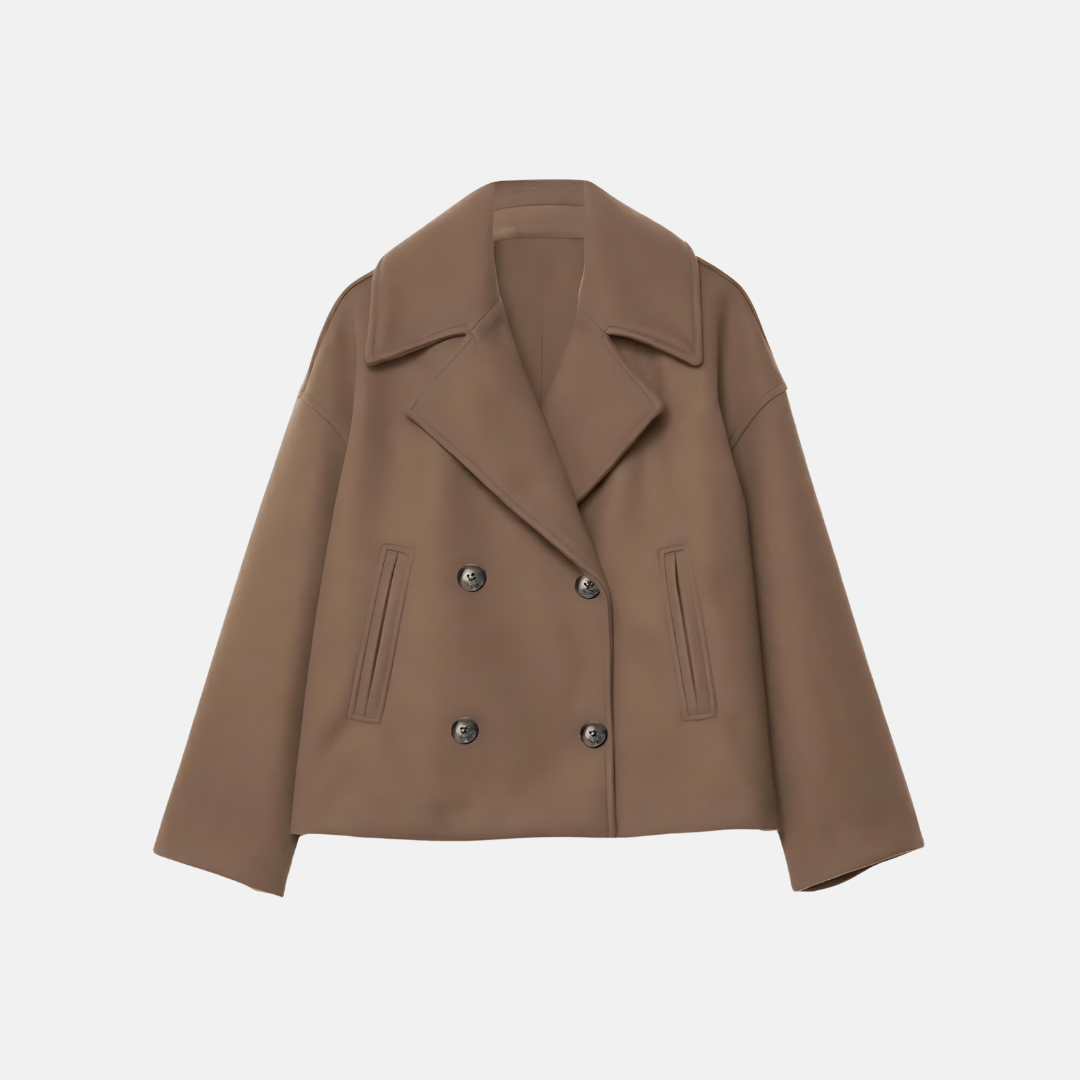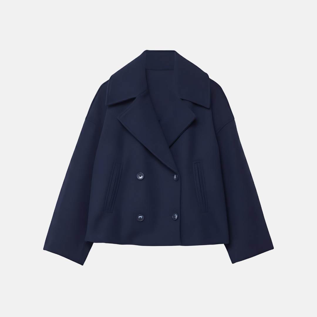 Opdag en frakke, der imponerer med sin reducerede form og rolige udstråling. Denne kortskårne model med knaplukning viser et klassisk snit med klare linjer og en afbalanceret fald. Den er velegnet til hverdag, til kontoret eller til pæne ture gennem byen.