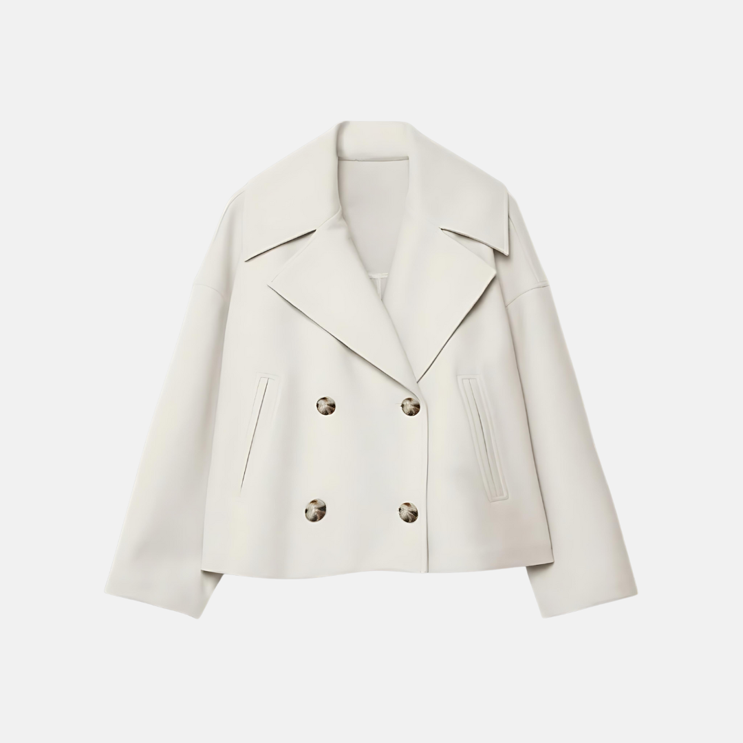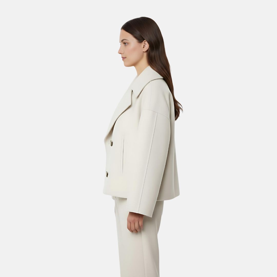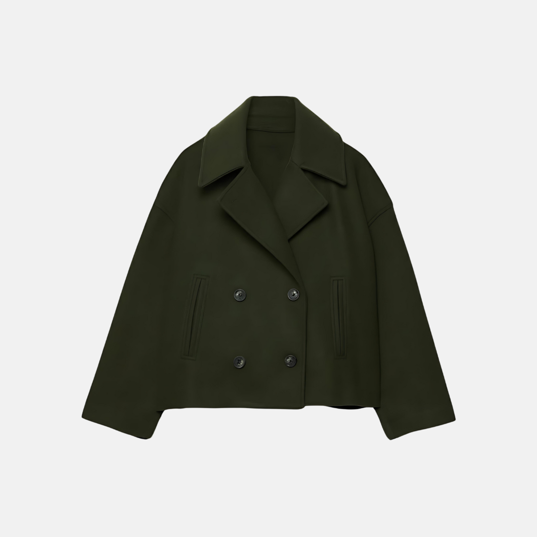 Opdag en frakke, der imponerer med sin reducerede form og rolige udstråling. Denne kortskårne model med knaplukning viser et klassisk snit med klare linjer og en afbalanceret fald. Den er velegnet til hverdag, til kontoret eller til pæne ture gennem byen.