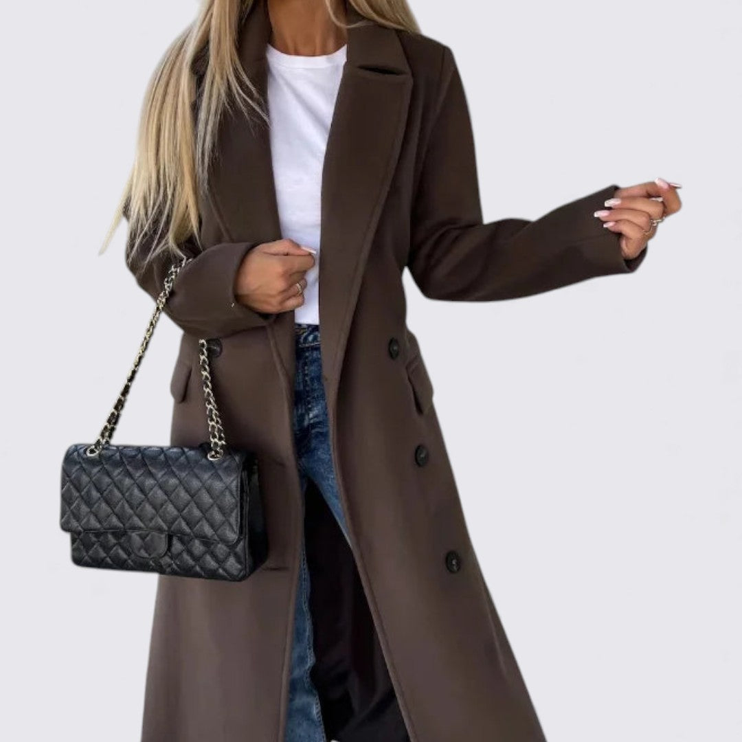 Denne frakke supplerer din garderobe som et stilfuldt og pålideligt valg til mange lejligheder.