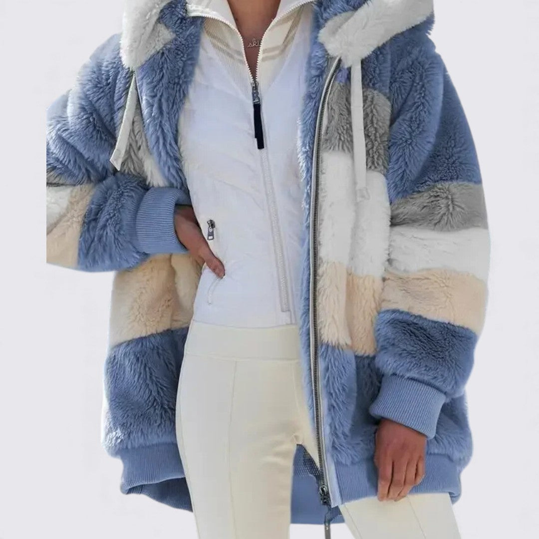 Dame hættejakke med lynlås – Blødt teddy-materiale – Løs pasform