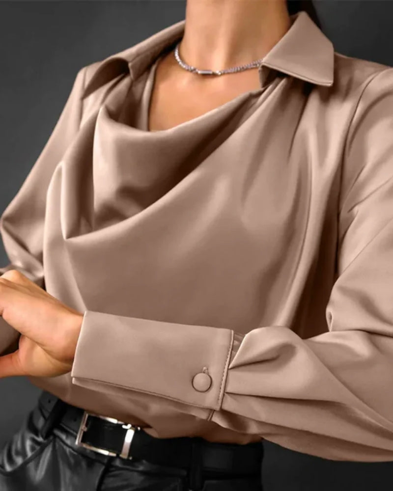 Denne bluse er et alsidigt beklædningsstykke til forskellige anledninger. Vandfaldskraven giver den et tidløst præg og gør den passende til kontoret, fritid eller aftenarrangementer. De klare linjer og den flydende form gør den let at kombinere. Den fås i fire farvevarianter, som supplerer forskellige outfits passende.