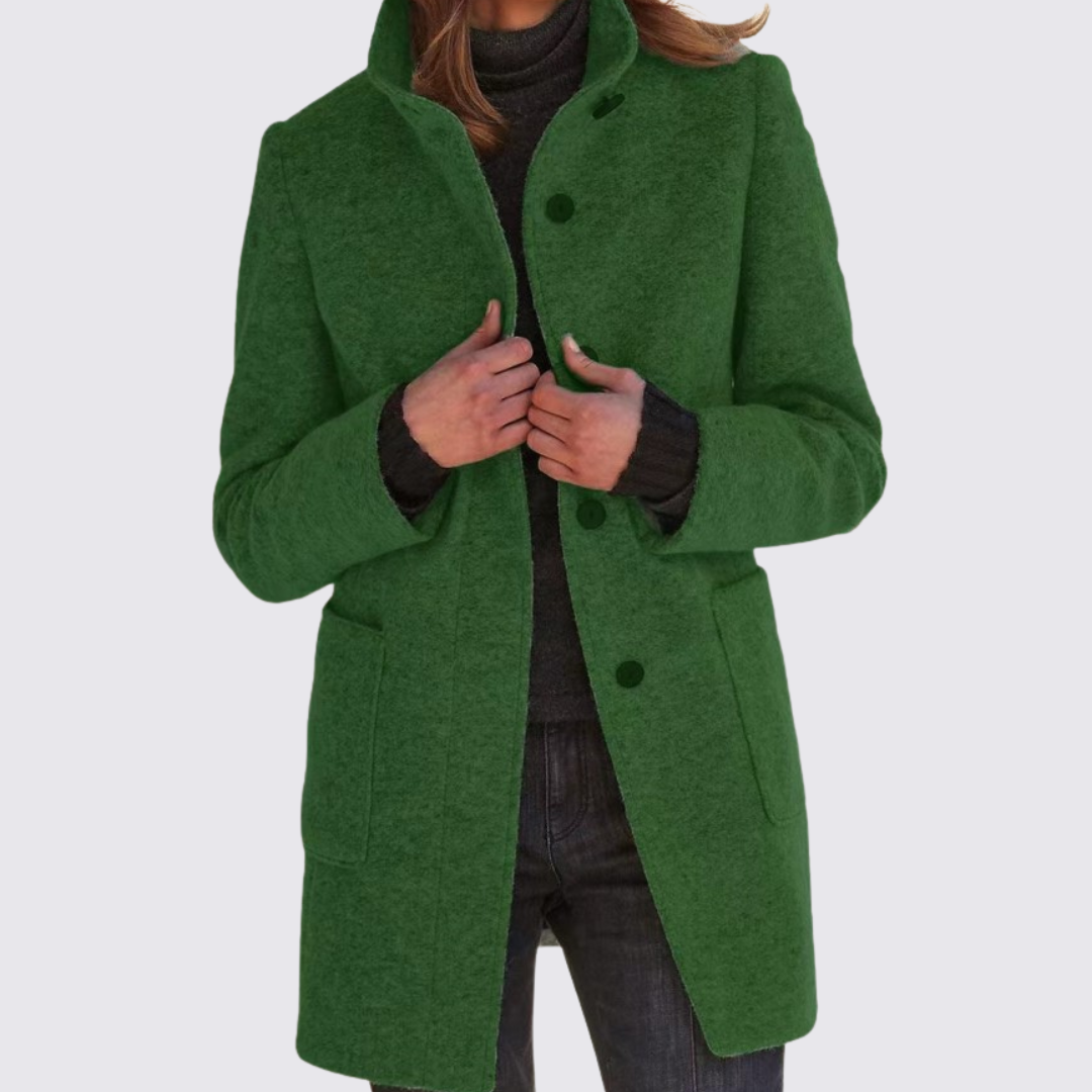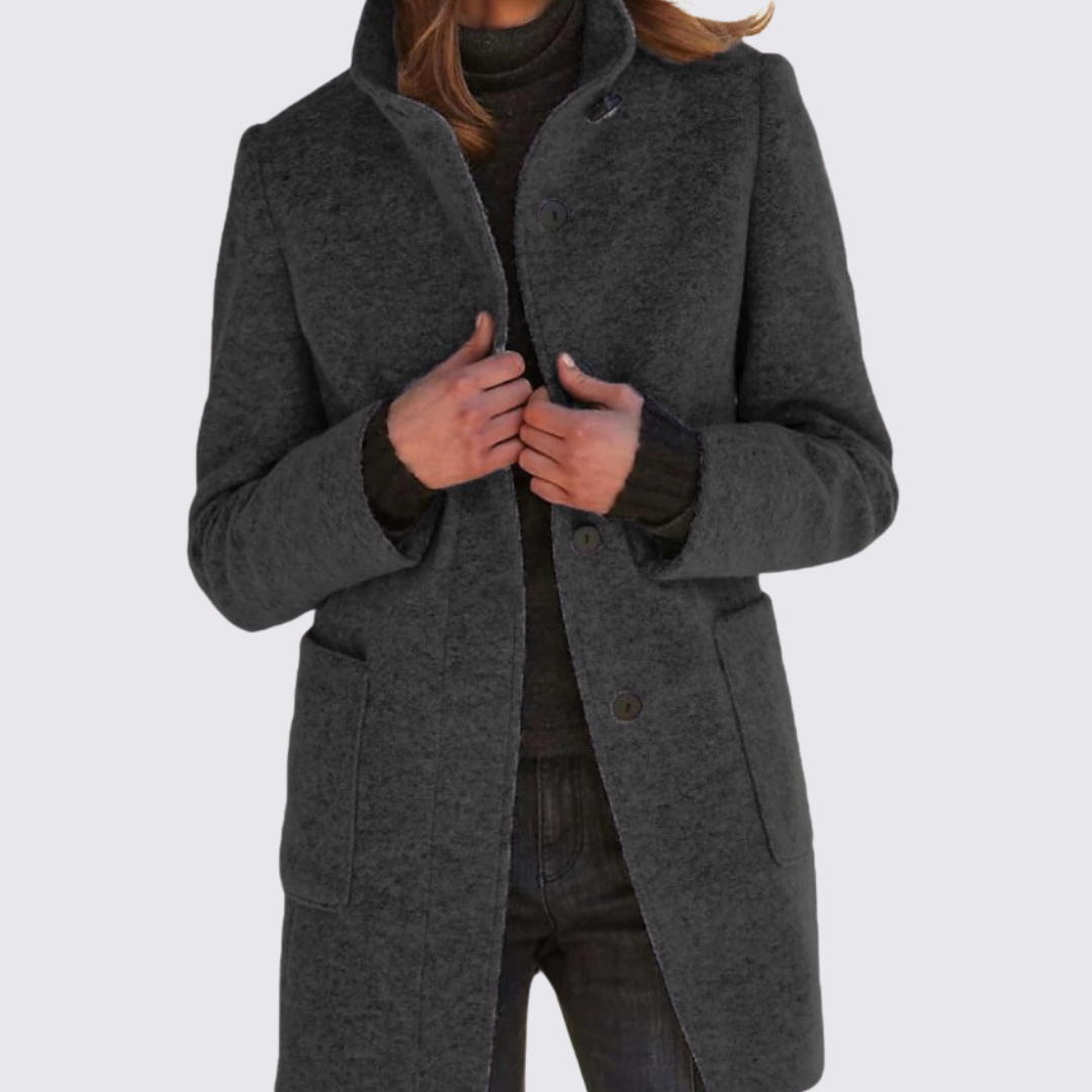 Dame Lang Frakke med Knapper – Lommer – Klassisk Skåret