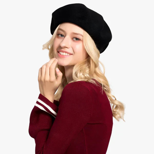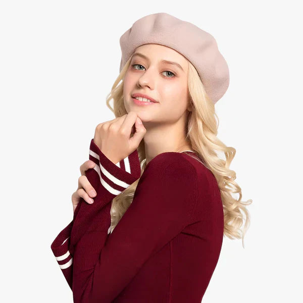Varm og Holdbar Strikket Baskerhue i Uld til Vinter