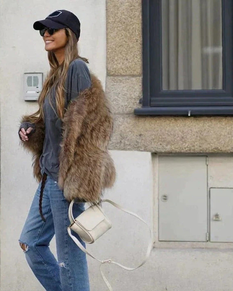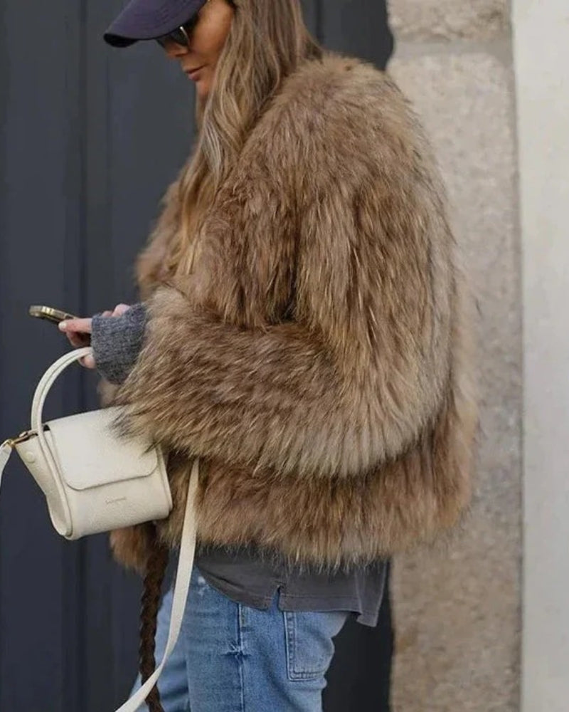 Vinterjakke Dame – kort kunstpelsfrakke med løs pasform