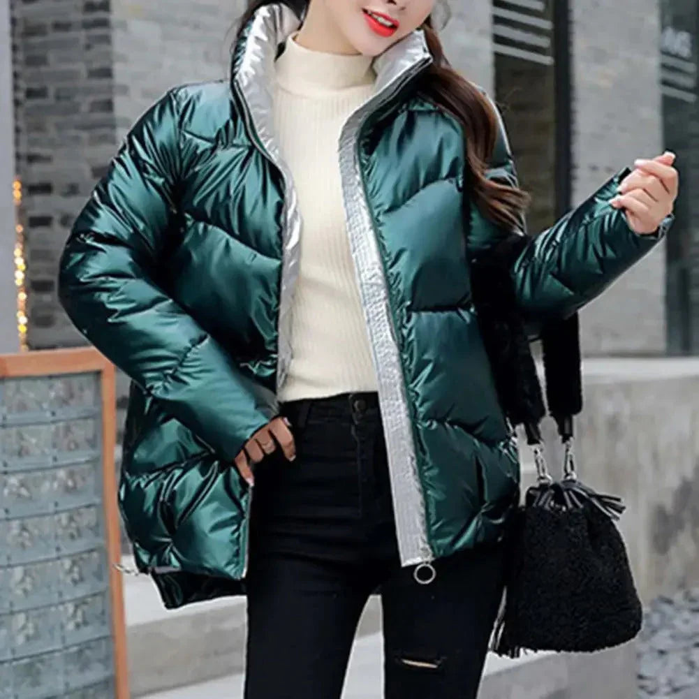 Den skinnende vinterjakke giver dit vintergarderobe et iøjnefaldende, stilfuldt touch. Med sin skinnende overflade og moderne design skiller den sig ud og giver samme tid varme og komfort. Perfekt til alle, der elsker moderne overtøj, giver denne jakke vinterstilen funktionalitet og flair.